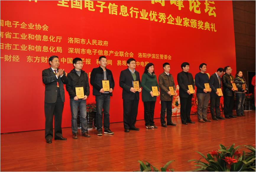 近日,第三屆中國電子高峰論壇暨2012“牡丹杯”全國電子信息行業(yè)優(yōu)秀企業(yè)家頒獎(jiǎng)典禮在河南洛陽鉬都利豪國際飯店隆重舉行,國家相關(guān)部委領(lǐng)導(dǎo),中國電子企業(yè)協(xié)會(huì)副會(huì)長、常務(wù)理事、理事、會(huì)員濟(jì)濟(jì)一堂,為2012年在電子信息產(chǎn)業(yè)界做出突出貢獻(xiàn)及成績的優(yōu)秀企業(yè)家進(jìn)行頒獎(jiǎng)。網(wǎng)經(jīng)科技(蘇州)有限公司總裁劉繼明博士受邀參加并一舉榮獲“2012年全國電子信息行業(yè)杰出企業(yè)家”稱號(hào)。